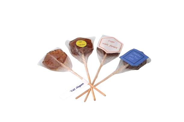 Zaujala Vás naše lízátka? Distribuujeme je po celé republice a od 150 ks máte dopravu zdarma. Objednávat můžete jakýkoli počet. Typizované balení je 50 ks v papírové krabičce. Lízátka dodáváme ve dvou variantách – s etiketou a bez etikety.